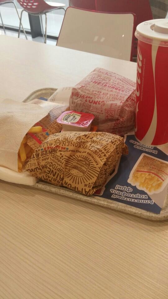 Брал Чикенбургер и Цезарь - не понравилось. Такое ощущение, что курица синтетического происхождения. Для фаст-фуда совсем не дешево